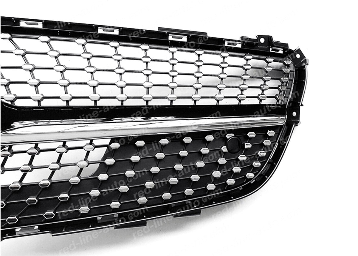 Aftermarket grilles manufactured at OEM standard, with top quality materials, precise design and light weight. A very cost-effective way to give your car a fresh lift to stand out on the road. This grille update is in line with AMG's newest design language: single horizontal fin with diamonds in chrome, it will subtle transform your car to provide a unique look without being crude.