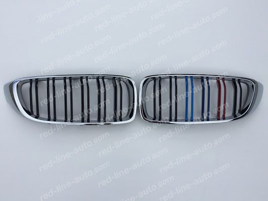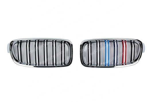 BMW 3 Series F30 Saloon F31 Estate Twin-slat Grille, Black With M-Power Tri-Colour Chrome Rim