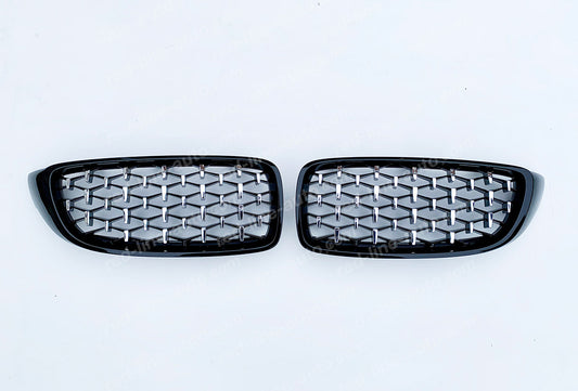 BMW 3 Series F30 Saloon F31 Estate M-Power Front Grille, Black With Chrome Diamond