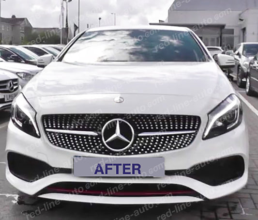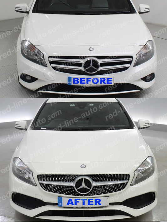 Facelift Mercedes W176 A-Class Hatchback AMG Black A45 Front Grille, Chrome Diamond