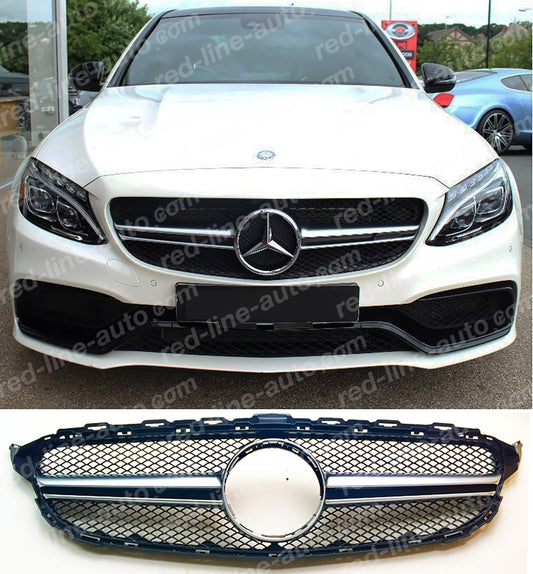 • Pre-Facelift Mercedes W205 C-Class Saloon S205 Estate C205 Coupe A205 Convertible Black AMG Grille, Chrome Diamond With-Camera