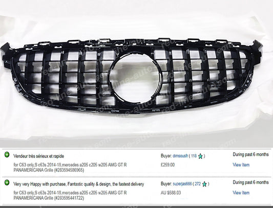 • Pre-Facelift Mercedes W205 C-Class Saloon S205 Estate C205 Coupe A205 AMG GT Grille, Matte Black Panamericana No-Camera