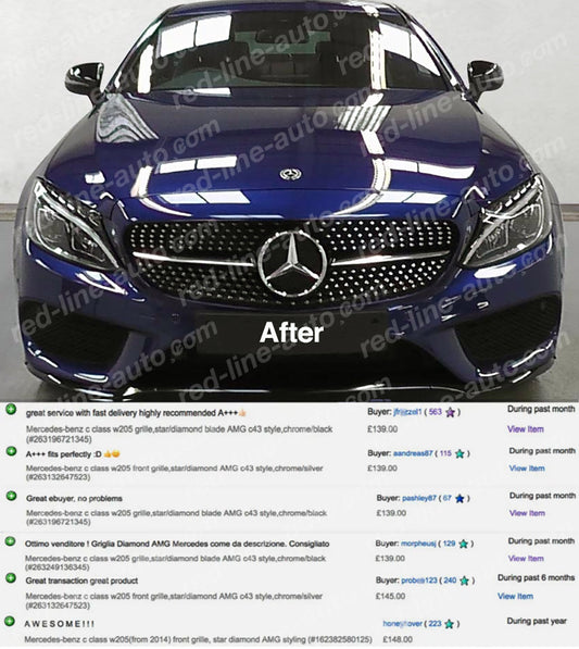 • Pre-Facelift Mercedes W205 C-Class Saloon S205 Estate C205 Coupe A205 Convertible Black AMG Grille, Chrome Diamond No-Camera