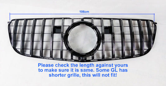 Pre-facelift Mercedes X166 GL SUV AMG 63 Black GT Front Grille, Chrome Panamericana Slat