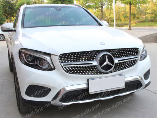 Facelift Mercedes Sport GLC X253 W253 SUV Black Front Grille, Non-AMG Bumper Chrome Diamond