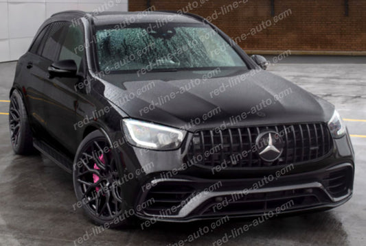 Facelift Mercedes Sport GLC X253 SUV GT Grille, Non-AMG Bumper, Panamericana Full Gloss Black