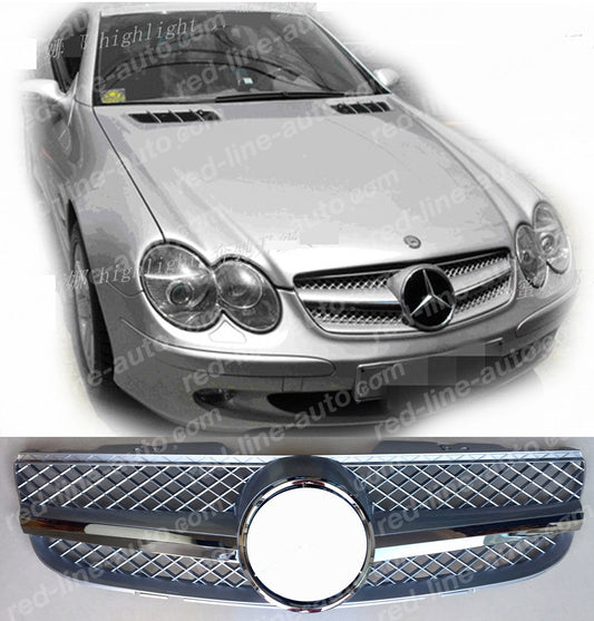 2006+ Facelift Mercedes R230 SL-Class Roadster AMG Grille, Black with Chrome Singe-fin
