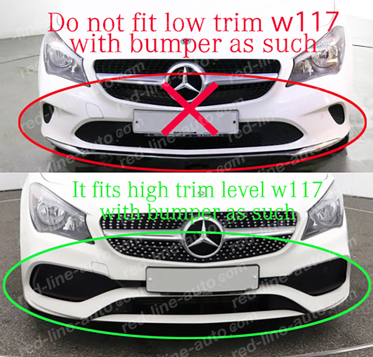 - Compatible models: For 2017-2020 facelift Mercedes-Benz W117 CLA-class coupe C117, shooting brake X117; Do not fit non-AMG bumper (check photo); Do not fit pre-facelift