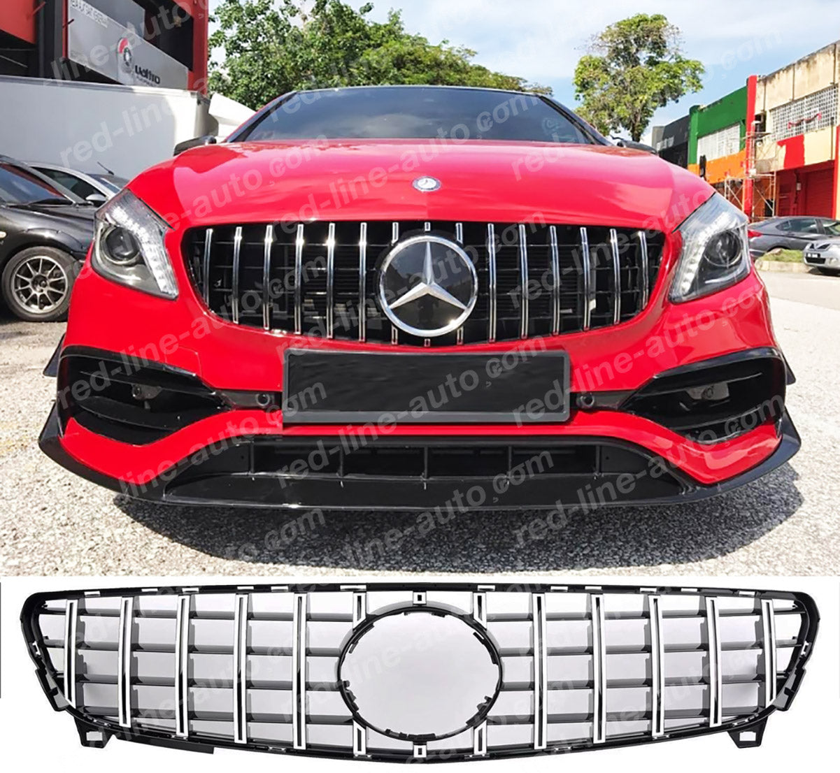 Facelift Mercedes W176 A-Class Hatchback AMG A45 Black GT Front Grille, Chrome Panamericana