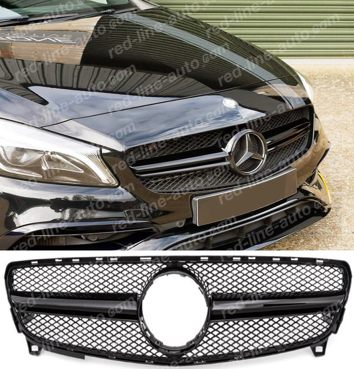 Facelift Mercedes W176 A-Class Hatchback AMG A45 Grille, Single-fin Full Gloss Black