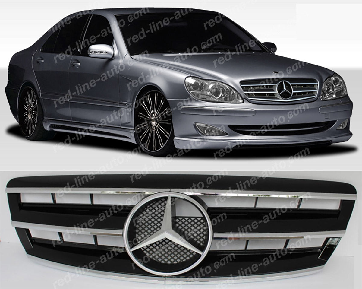 Facelift Mercedes W220 S-Class Saloon AMG S65 Black Sports Front Grille with STAR, Chrome Louvres