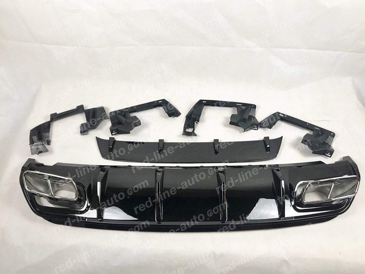 - Item: Aftermarket rear aero kits: canards, splitters, spoilers, lips, diffuser, skirt etc. in high shine gloss black ABS plastic, with chrome stainless steel quad exhaust tips