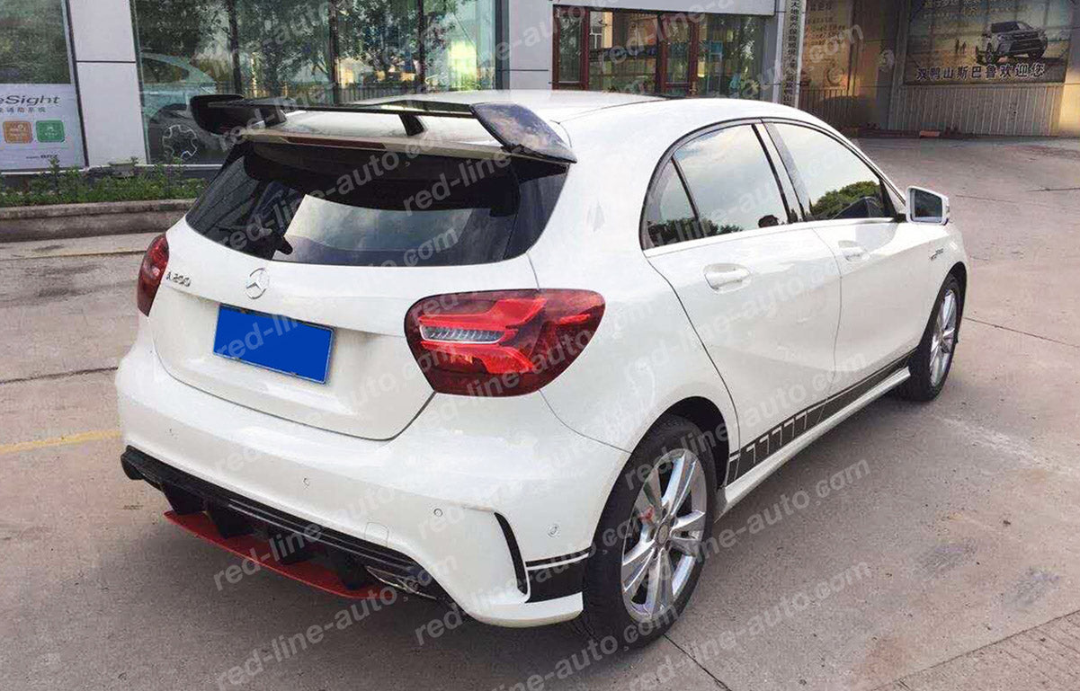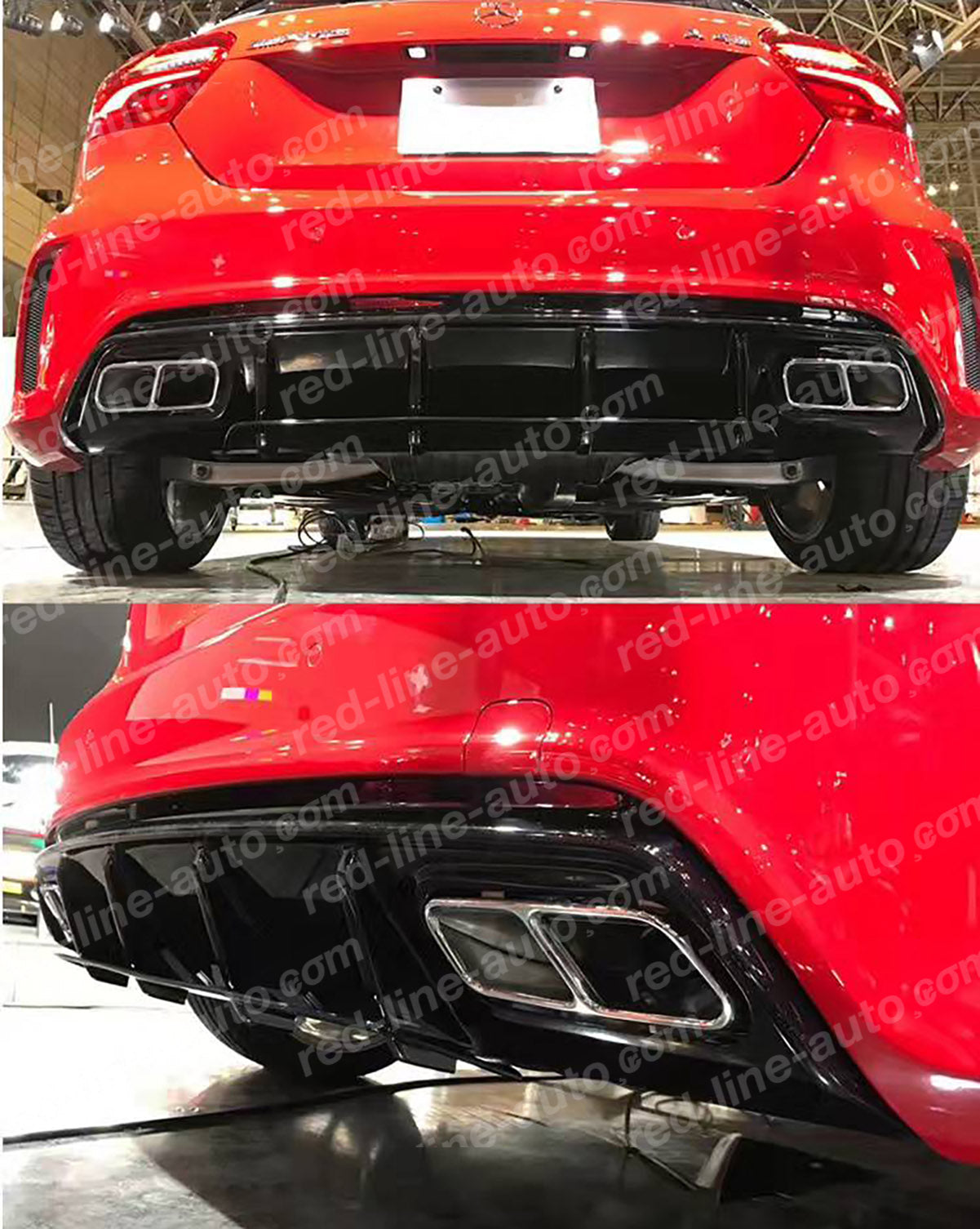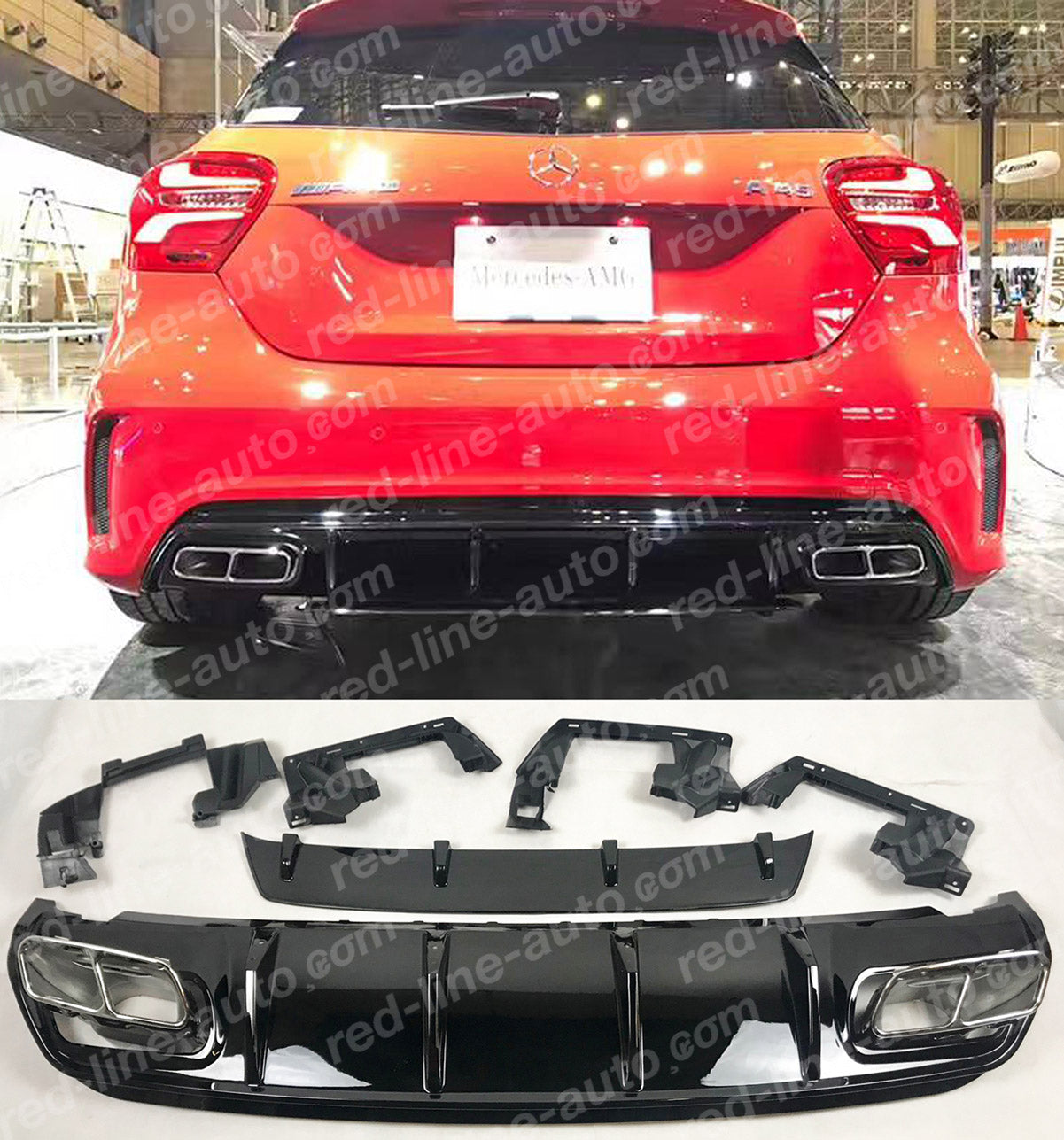 Mercedes W176 A-Class Rear AMG A45 Conversion Aero Kits Canard Splitter Lip Diffuser Quad Exhaust