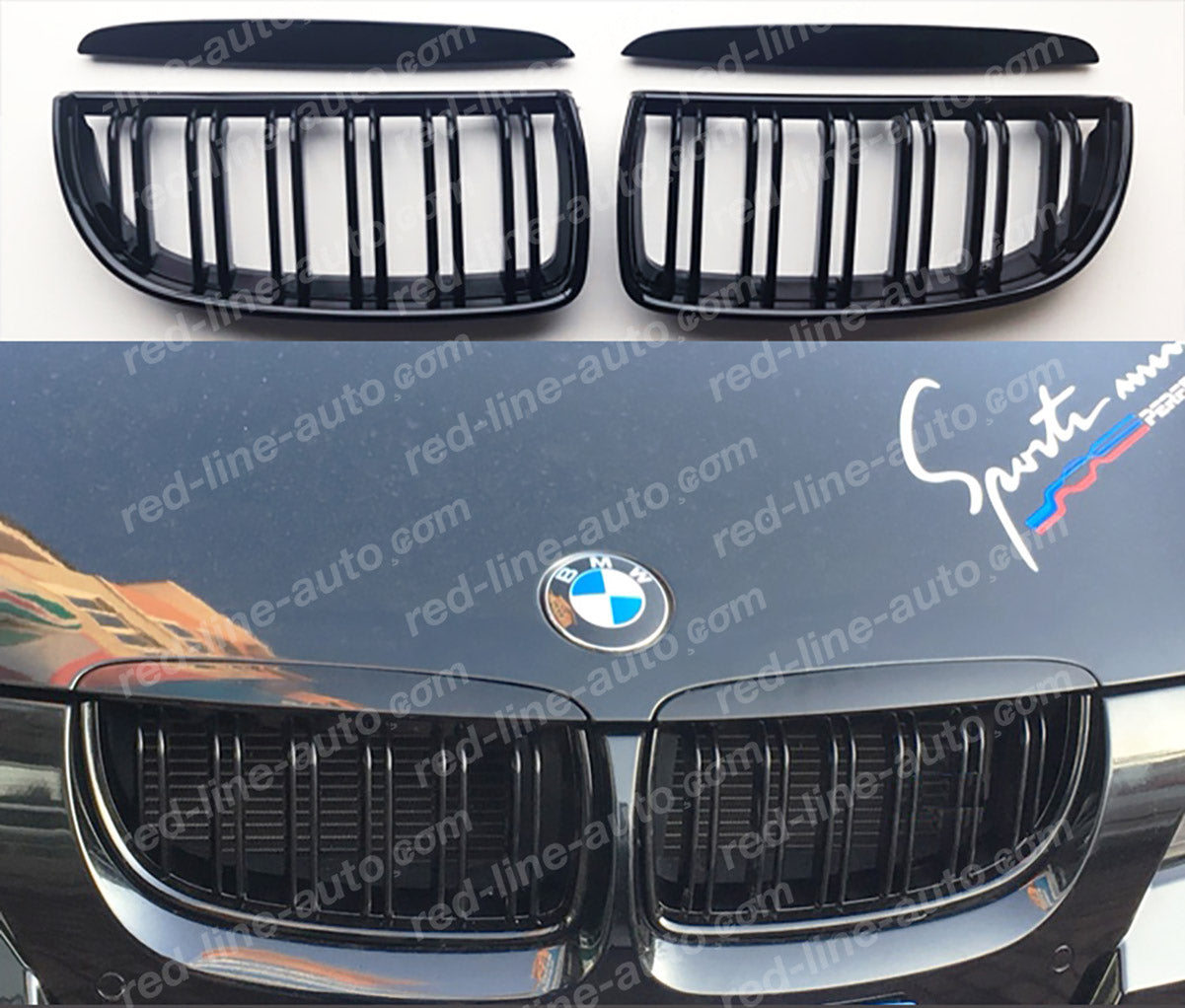 Pre-facelift BMW 3 Series E90 Saloon E91 Estate M-Performance Grille, Gloss Black Double-Bar