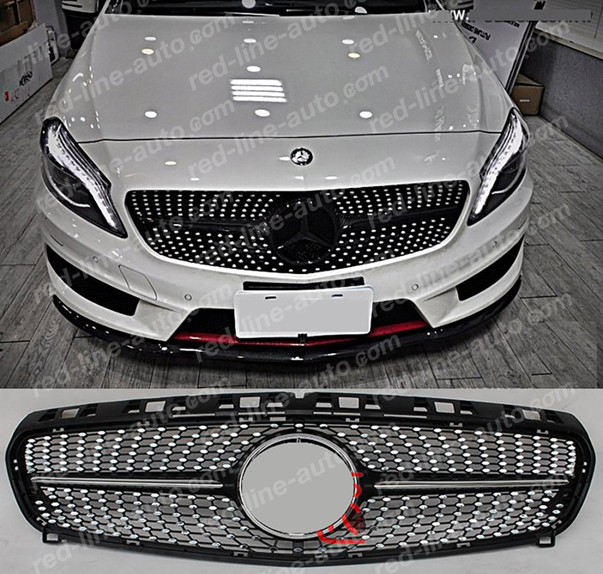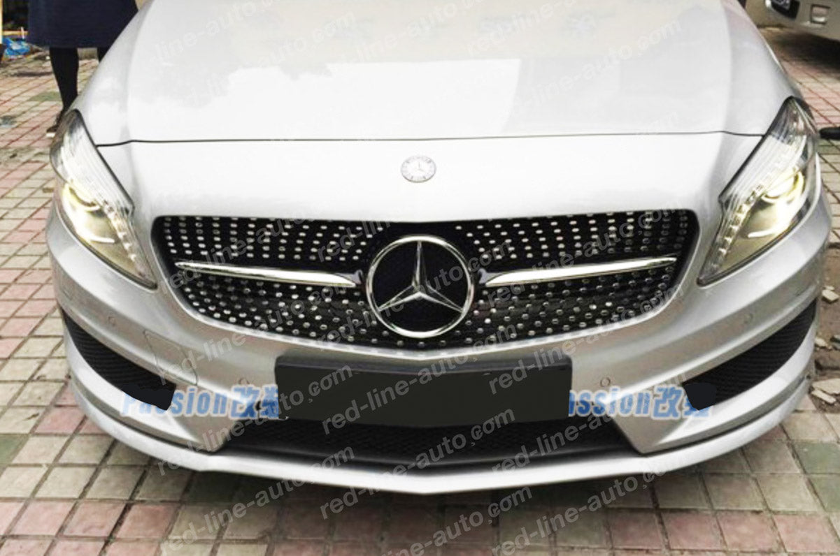 Pre-facelift Mercedes W176 A-Class Hatchback AMG Black A45 Front Grille, Chrome Diamond