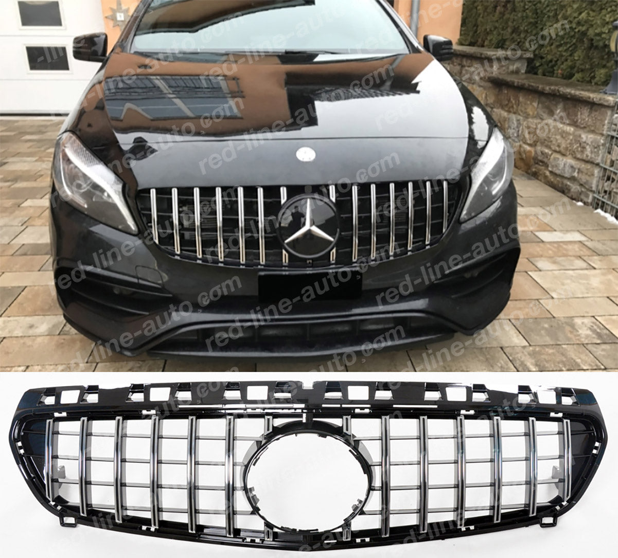 Pre-facelift Mercedes W176 A-Class Hatchback AMG GT Grille, Black with Chrome Panamericana