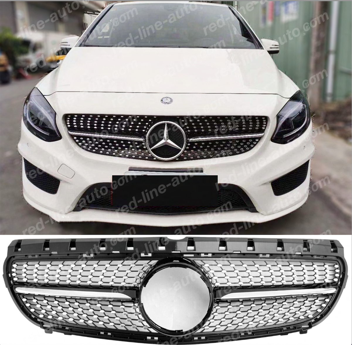 Facelift Mercedes W246 B-Class Hatchback MPV Black AMG Sports Front Grille, Chrome Diamond