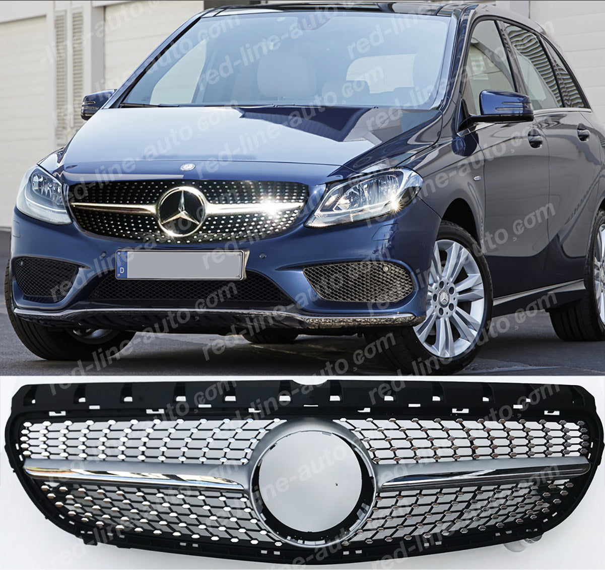 Facelift Mercedes W246 B-Class Hatchback MPV Iridium Silver AMG Grille, Chrome Diamond