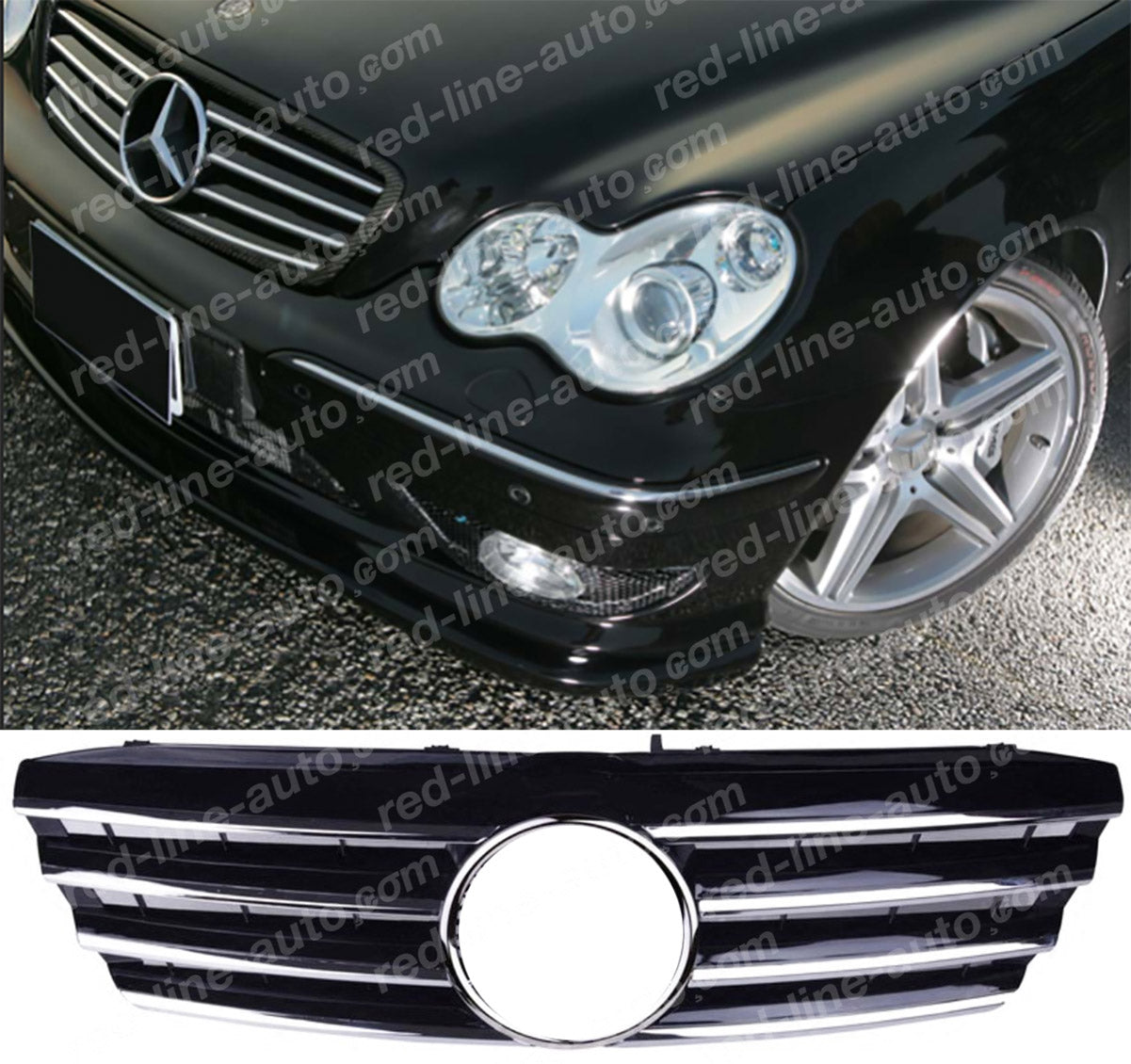 Mercedes W203 C-Class Saloon S203 Estate AMG Sport Black Grille with Star, Chrome Blades