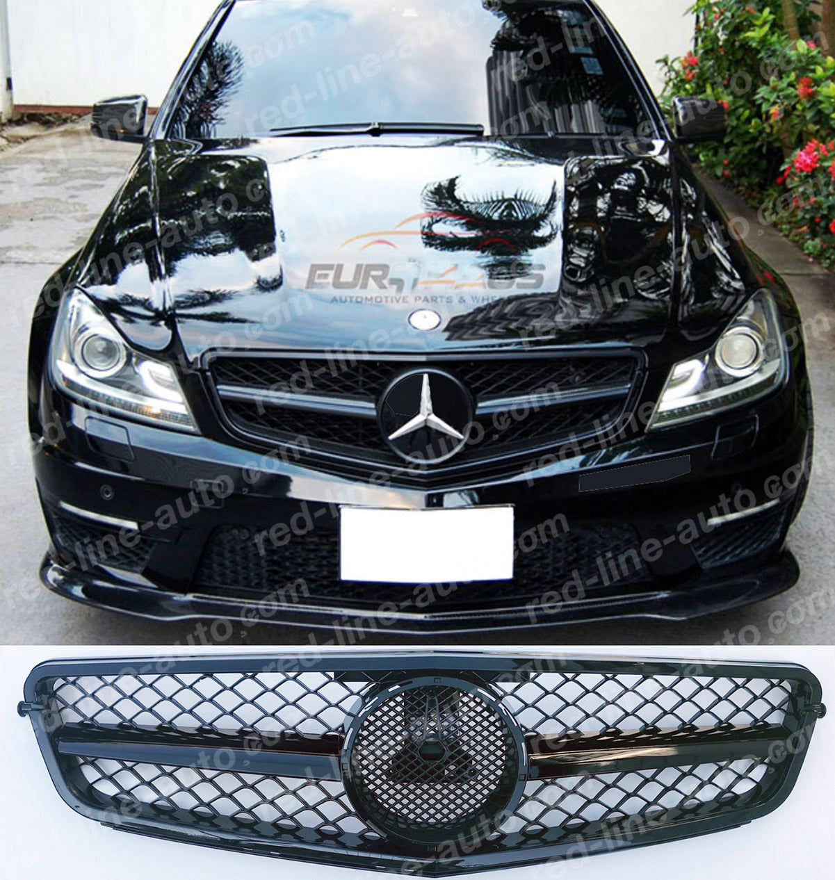 Mercedes W204 C-Class Saloon S204 Estate A204 Coupe AMG Single-bar Grille, Full Gloss Black