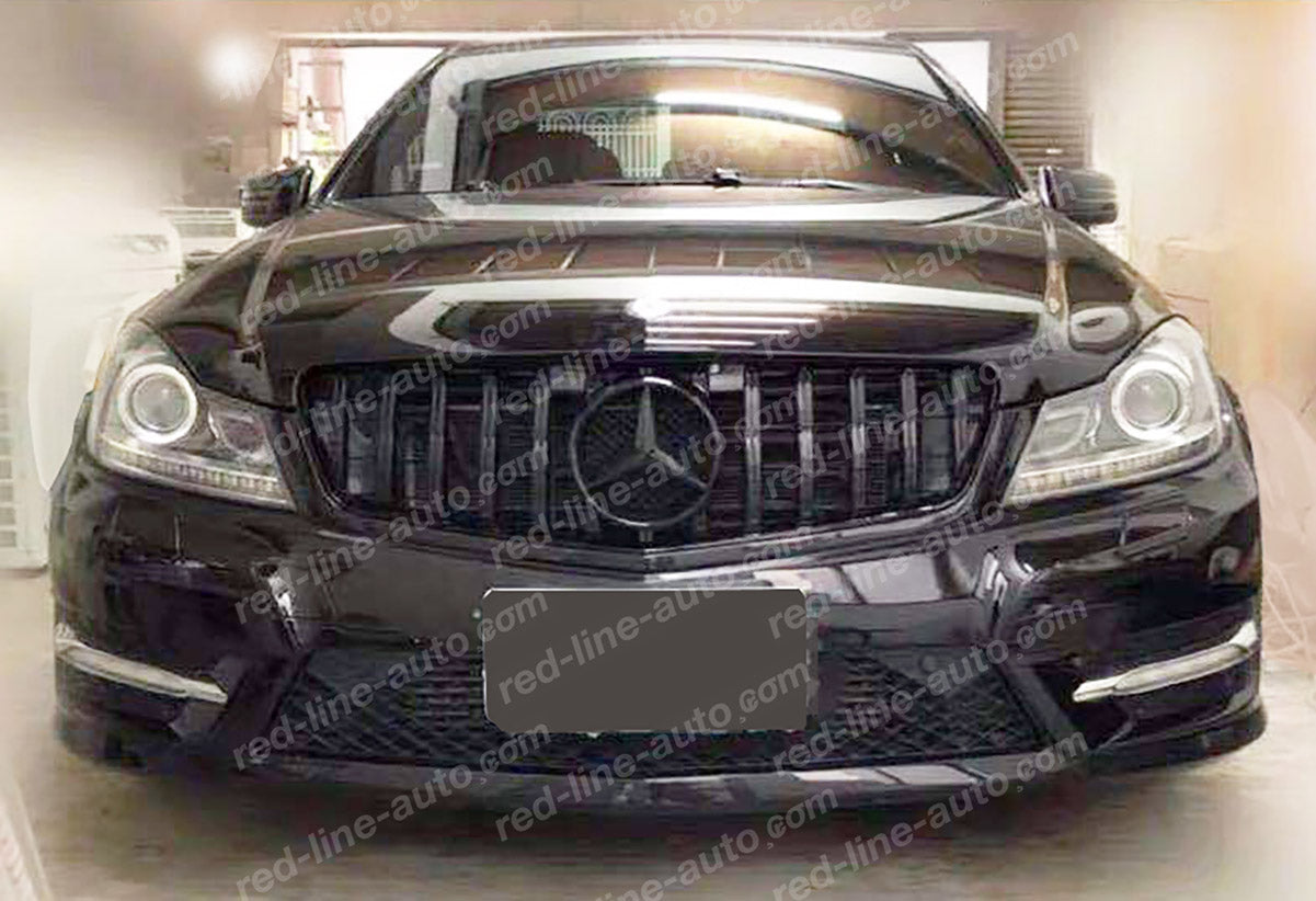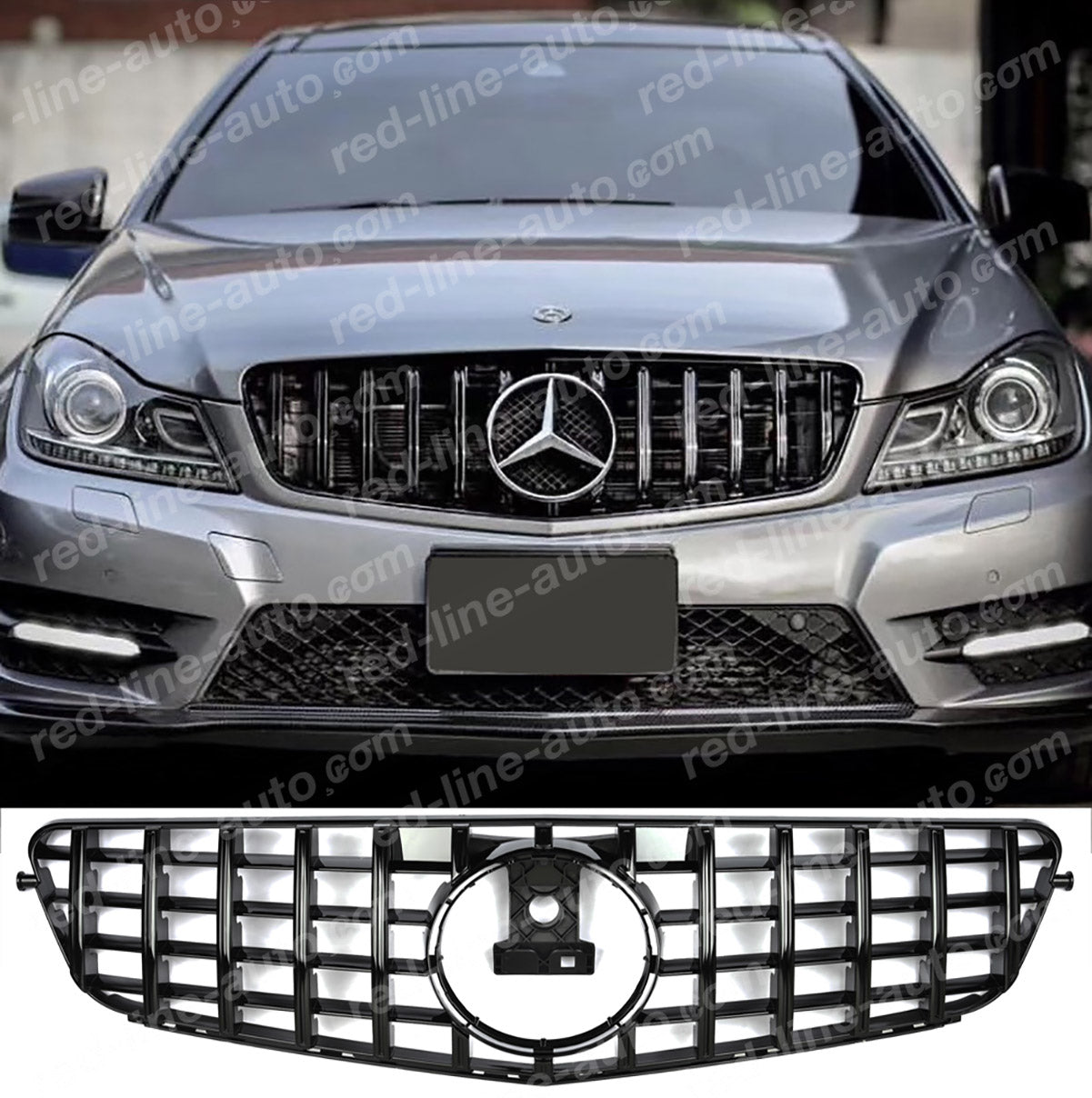 Mercedes W204 C-Class Saloon S204 Estate A204 Coupe GT Front Grille, Full Gloss Black Panamericana