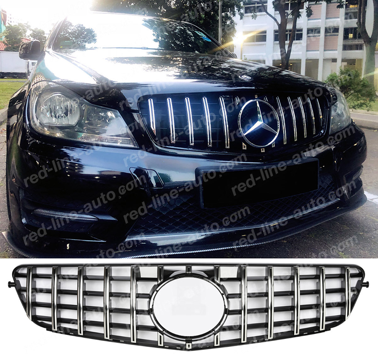 Mercedes W204 C-Class Saloon S204 Estate A204 Coupe Black GT Front Grille, Chrome Panamericana