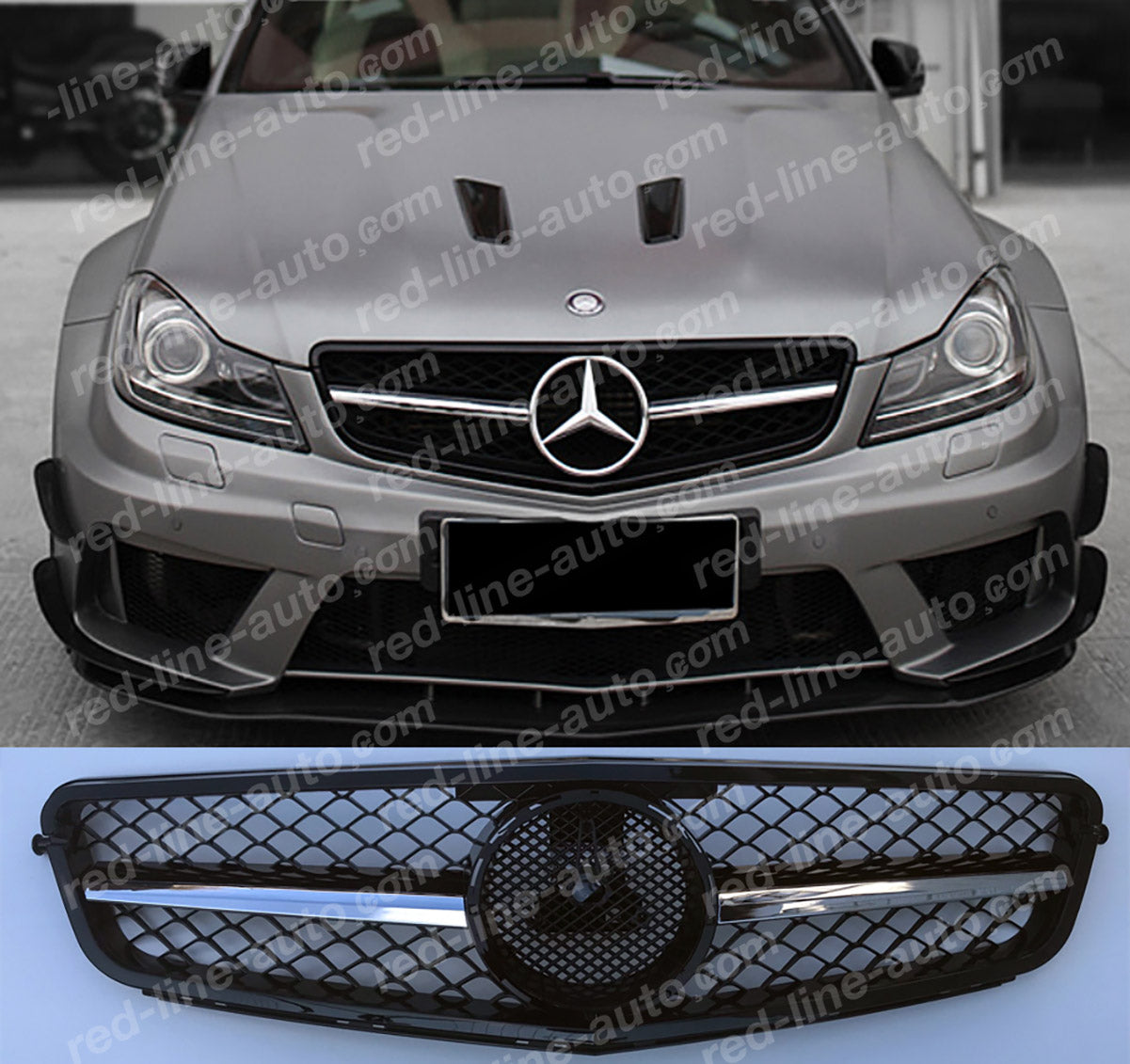 Mercedes W204 C-Class Saloon S204 Estate A204 Coupe Black AMG Grille, Chrome Single-Bar