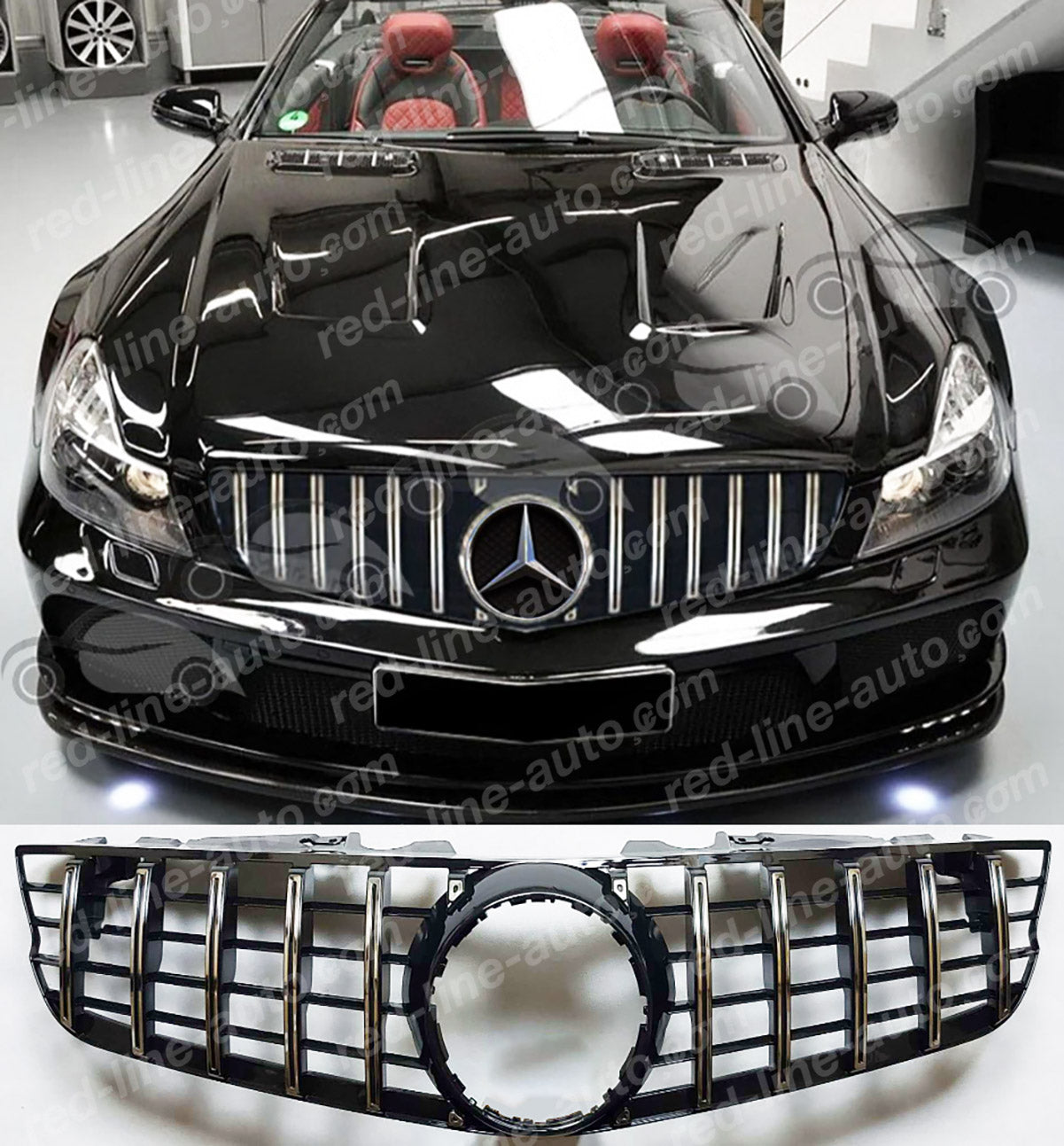 2008+ Facelift Mercedes R230 SL-Class Roadster AMG GT Grille, Black With Chrome Panamericana