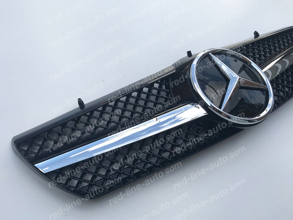 Mercedes W215 CL-Class C215 Coupe Black AMG Front Grille with STAR, Chrome Single-fin
