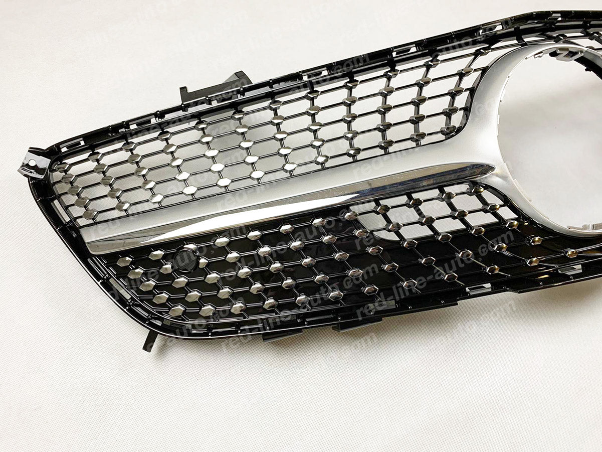 Aftermarket grilles manufactured at OEM standard, with top quality materials, precise design and light weight. A very cost-effective way to give your car a fresh lift to stand out on the road. This grille update is in line with AMG's newest design language: single horizontal fin with diamonds in chrome, it will subtle transform your car to provide a unique look without being crude.