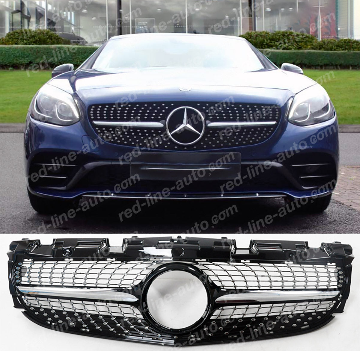 Mercedes R172 SLC Roadster Convertible SLC43 AMG Black Front Grille, Chrome Diamond