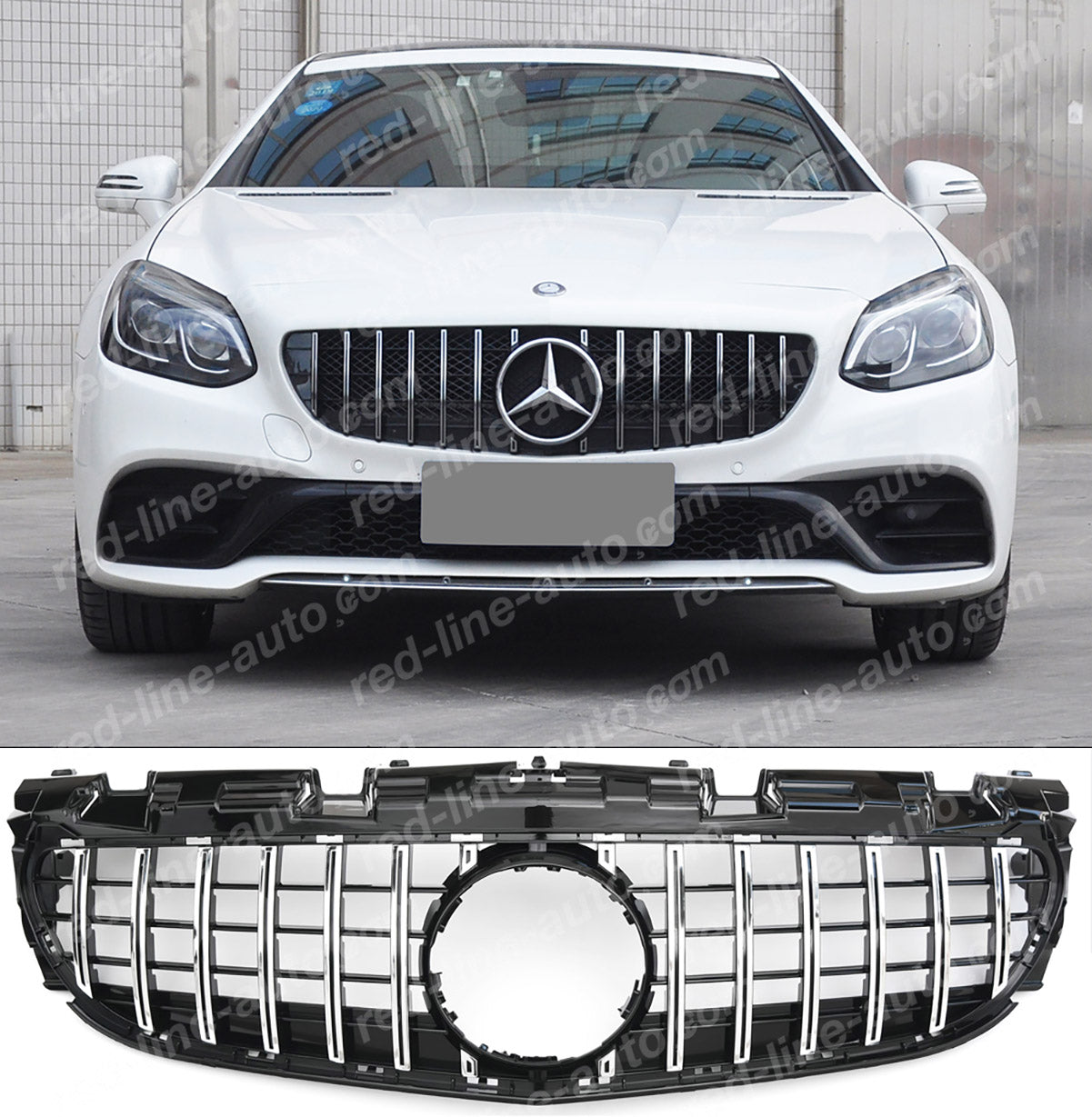 Mercedes R172 SLC Roadster Convertible SLC43 Black AMG GT Front Grille, Chrome Panamericana