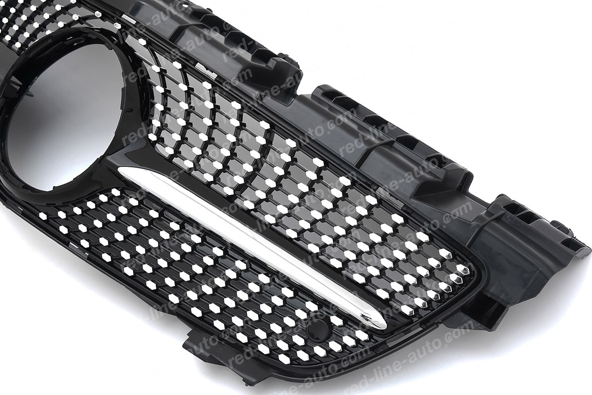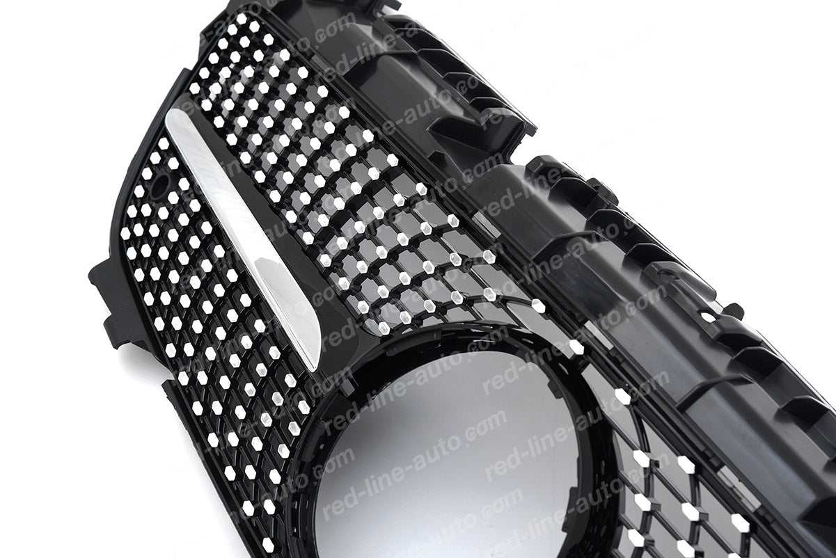 Aftermarket grilles manufactured at OEM standard, with top quality materials, precise design and light weight. A very cost-effective way to give your car a fresh lift to stand out on the road. This grille update is in line with AMG's newest design language: single horizontal fin with diamonds in chrome, it will subtle transform your car to provide a unique look without being crude.