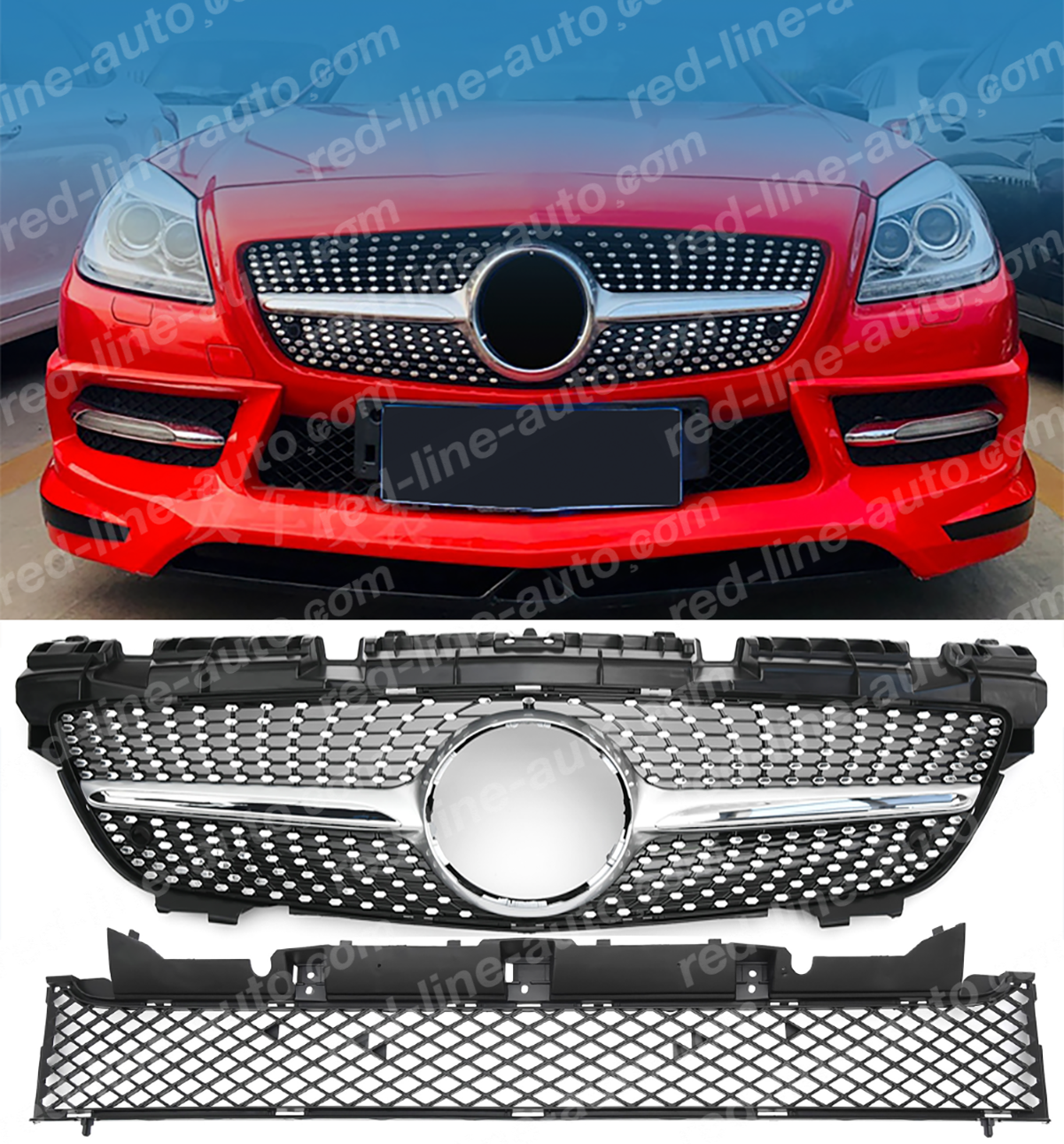 Mercedes R172 SLK Roadster Convertible SLK55 AMG Diamond Front Grille, Iridium Silver