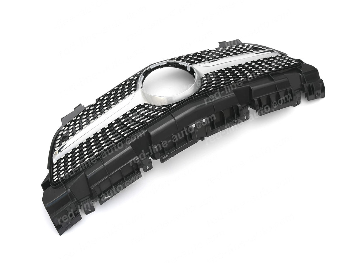 Aftermarket grilles manufactured at OEM standard, with top quality materials, precise design and light weight. A very cost-effective way to give your car a fresh lift to stand out on the road. This grille update is in line with AMG's newest design language: single horizontal fin with diamonds in chrome, it will subtle transform your car to provide a unique look without being crude.