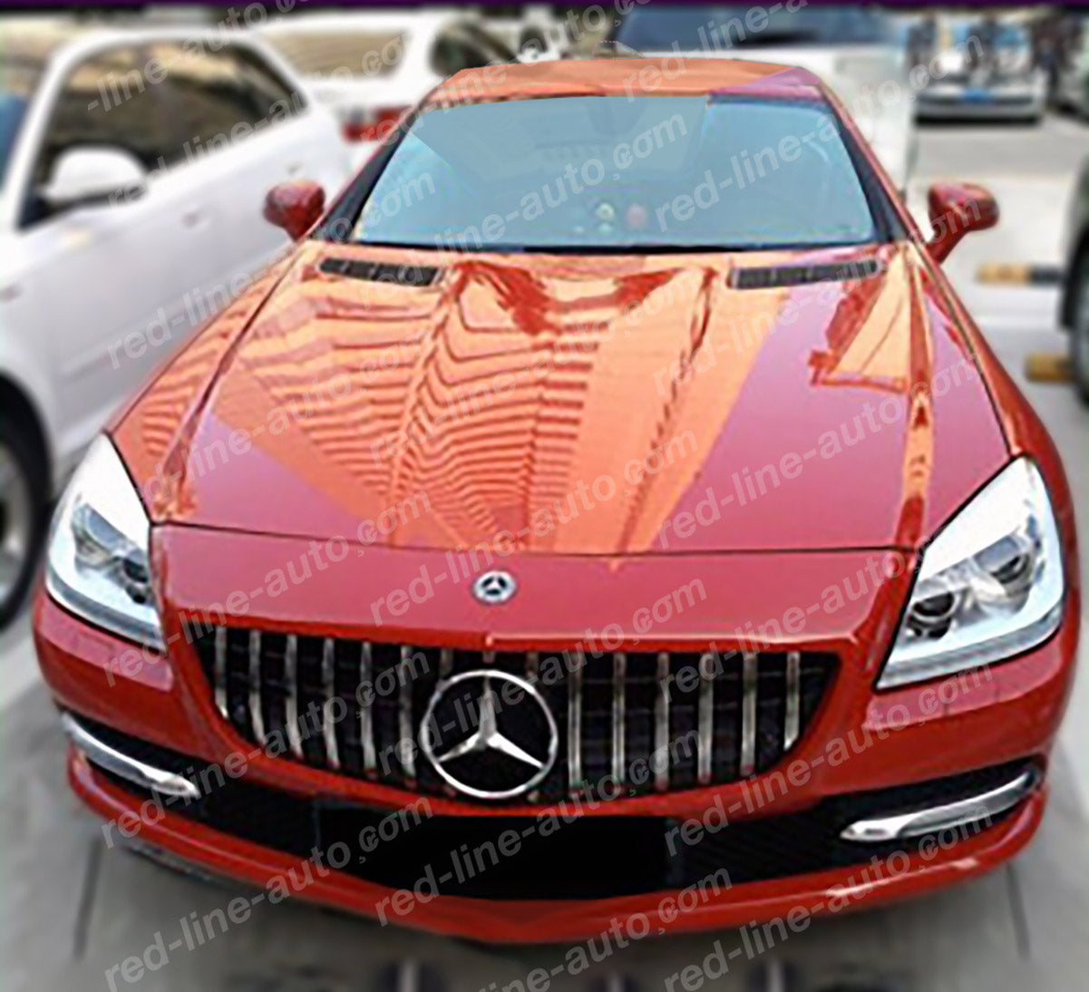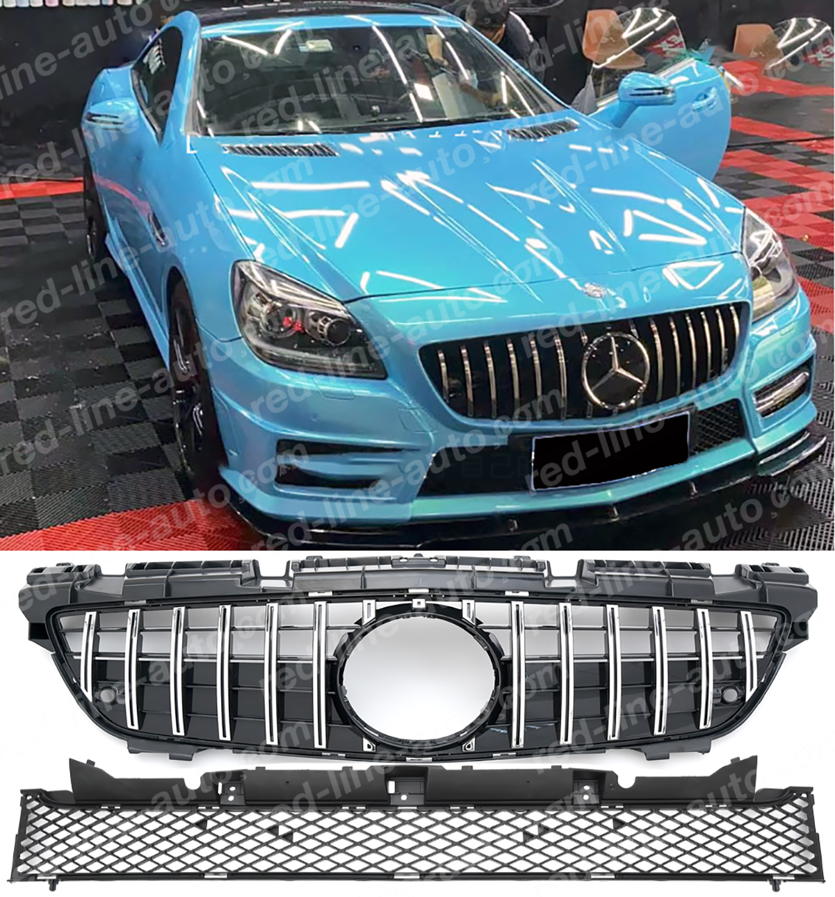 Mercedes R172 SLK Roadster Black SLK55 AMG GT Front Grille, Chrome Panamericana Slat