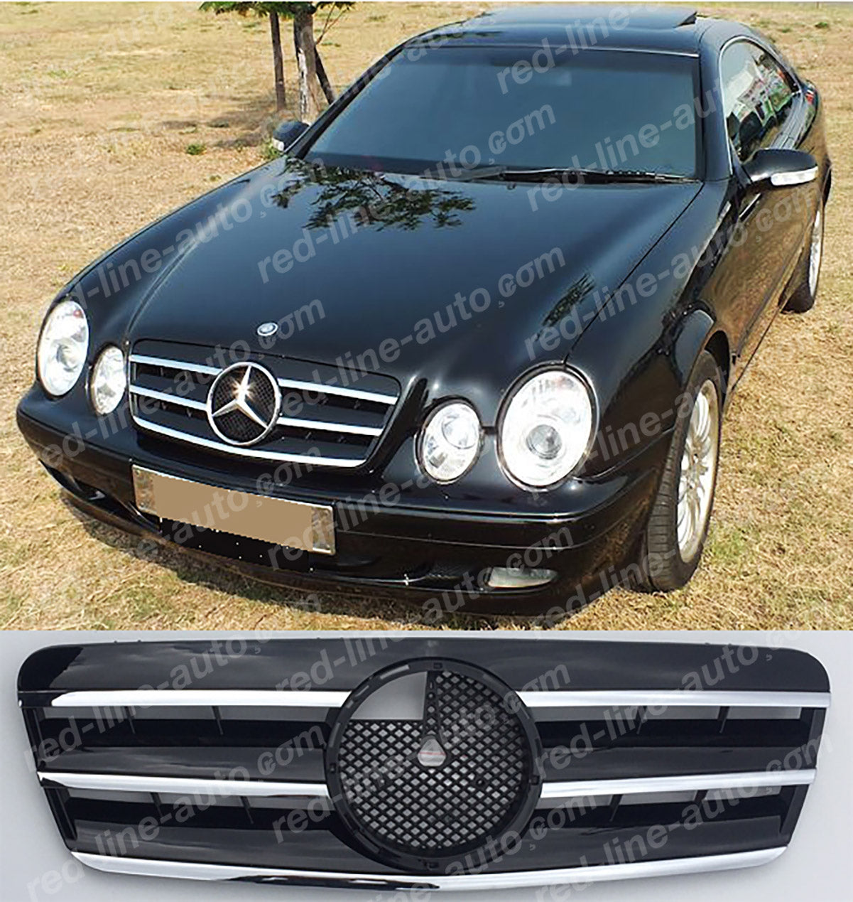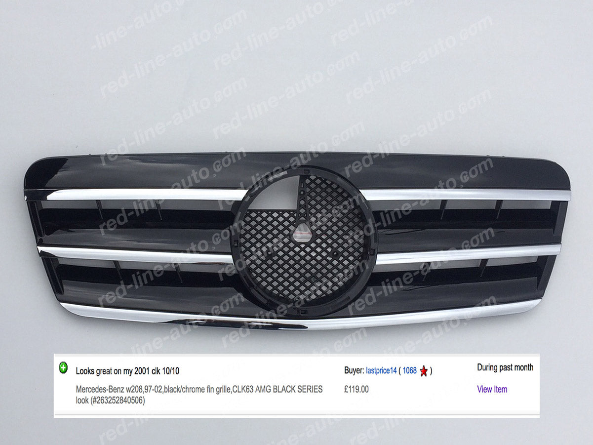 Mercedes W208 CLK Coupe C208 Convertible A208 AMG Sport Black Grille with Star, Chrome Blades