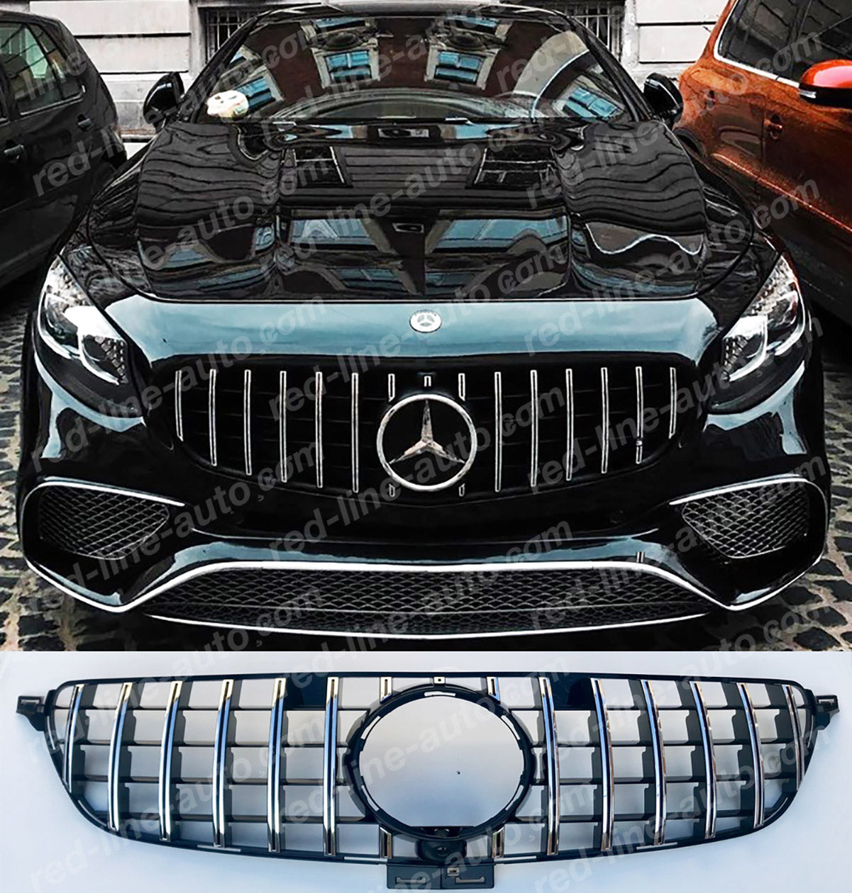 2015+ Mercedes W166 GLE SUV Black AMG GT Front Grille, Chrome Panamericana Slats