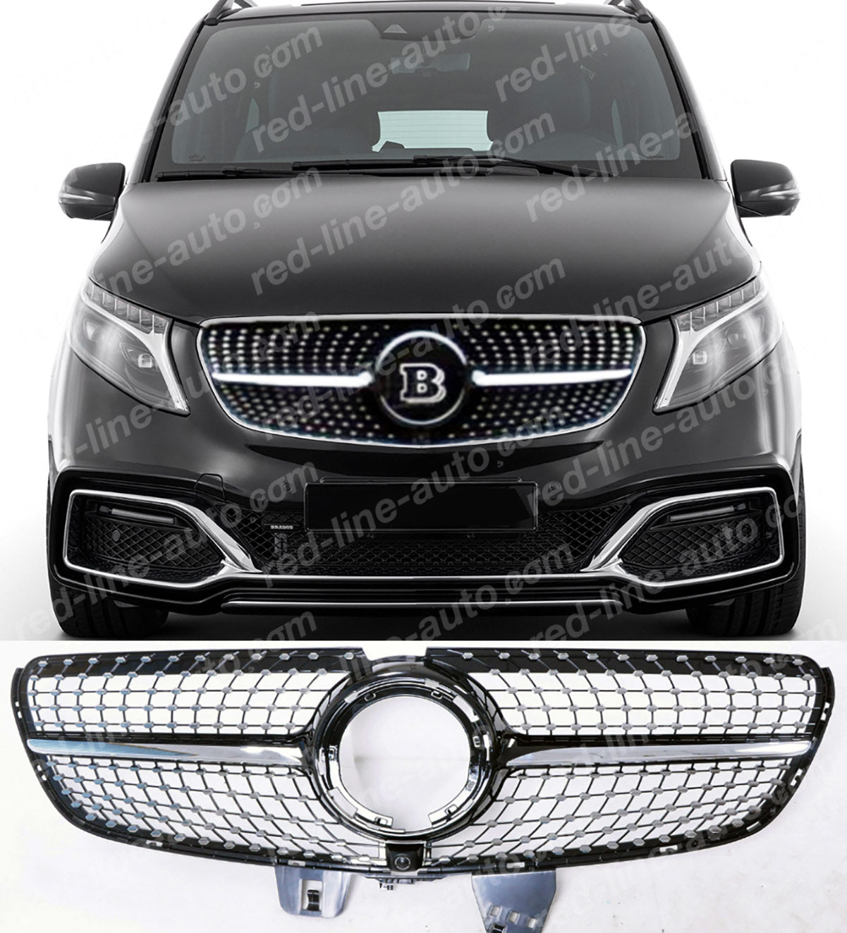 2020+ Facelift Mercedes W447 V-Class MPV Viano Non-AMG Black Front Grille, Chrome Diamond