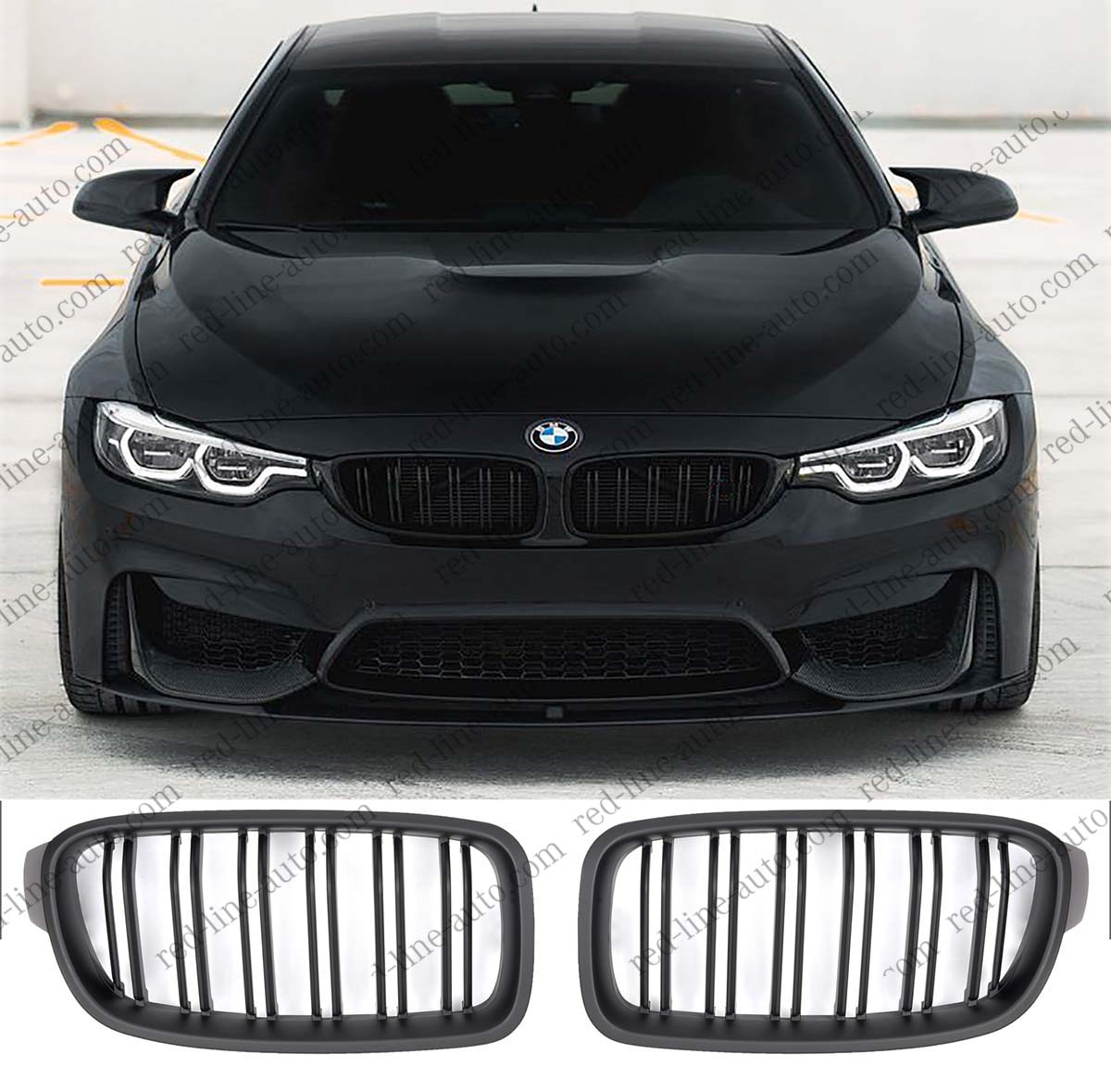 BMW 3 Series F30 Saloon F31 Estate M-Performance Front Grille, Full Matte Black Twin-bar