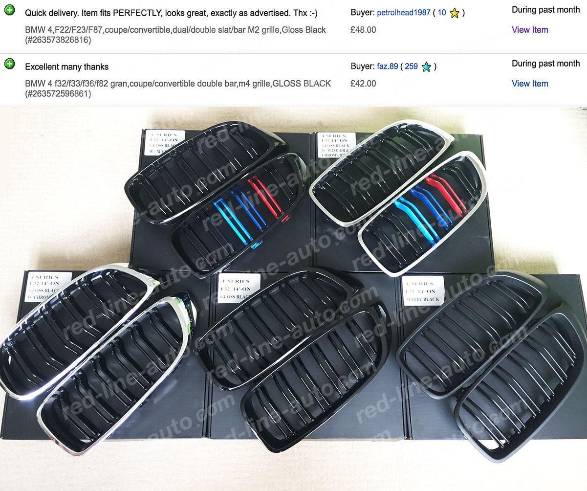 BMW 4 Series F32 Coupe F33 Convertible F36 Gran Dual-slat Front Grille, Black With M-Power Tri-Colours