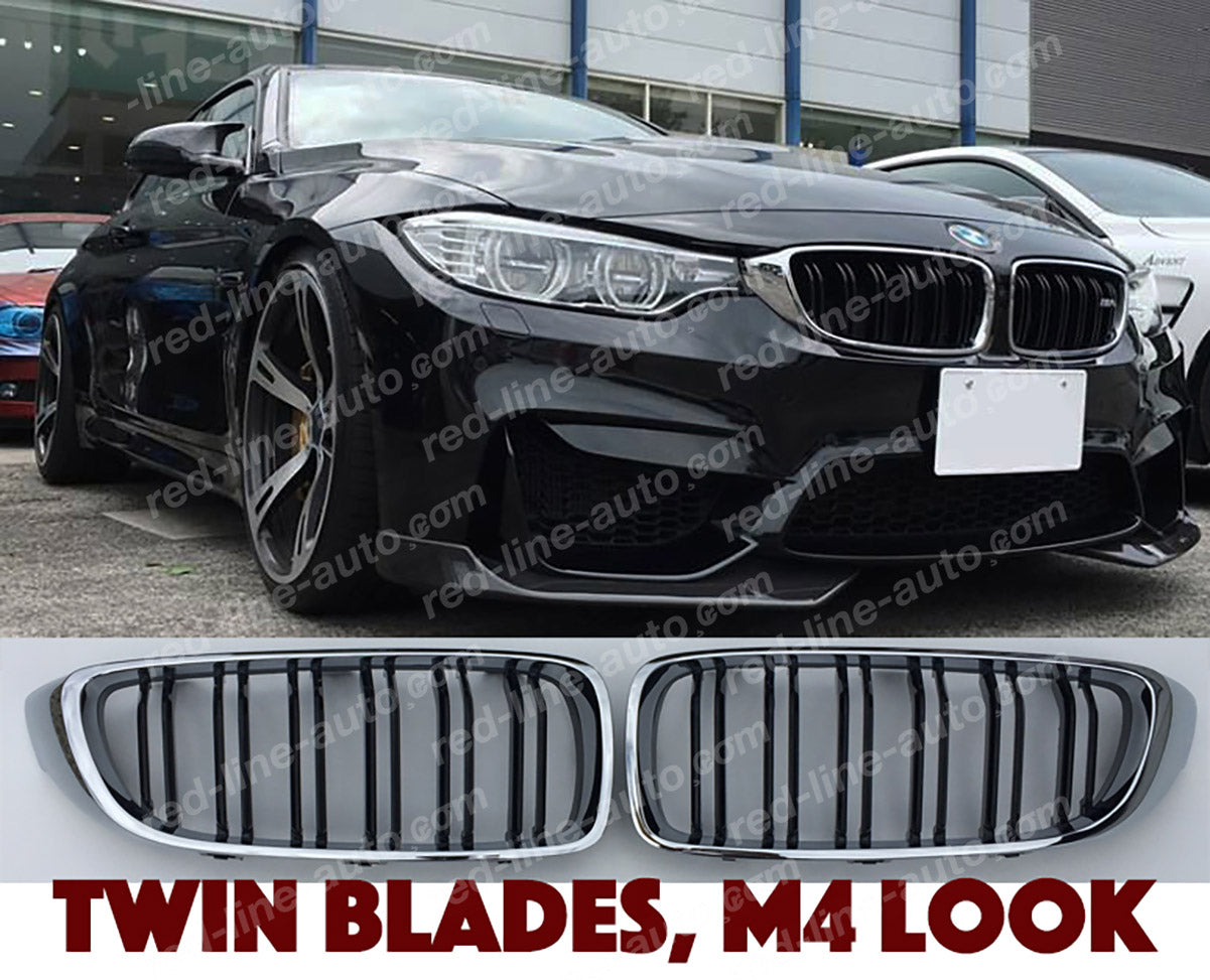 BMW 4 Series F32 Coupe F33 Convertible F36 Gran M-Power Front Grille, Black Twin-Bar with Chrome Surround