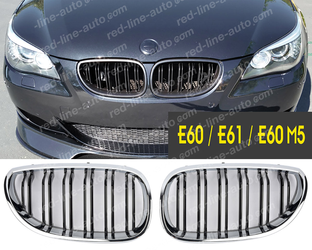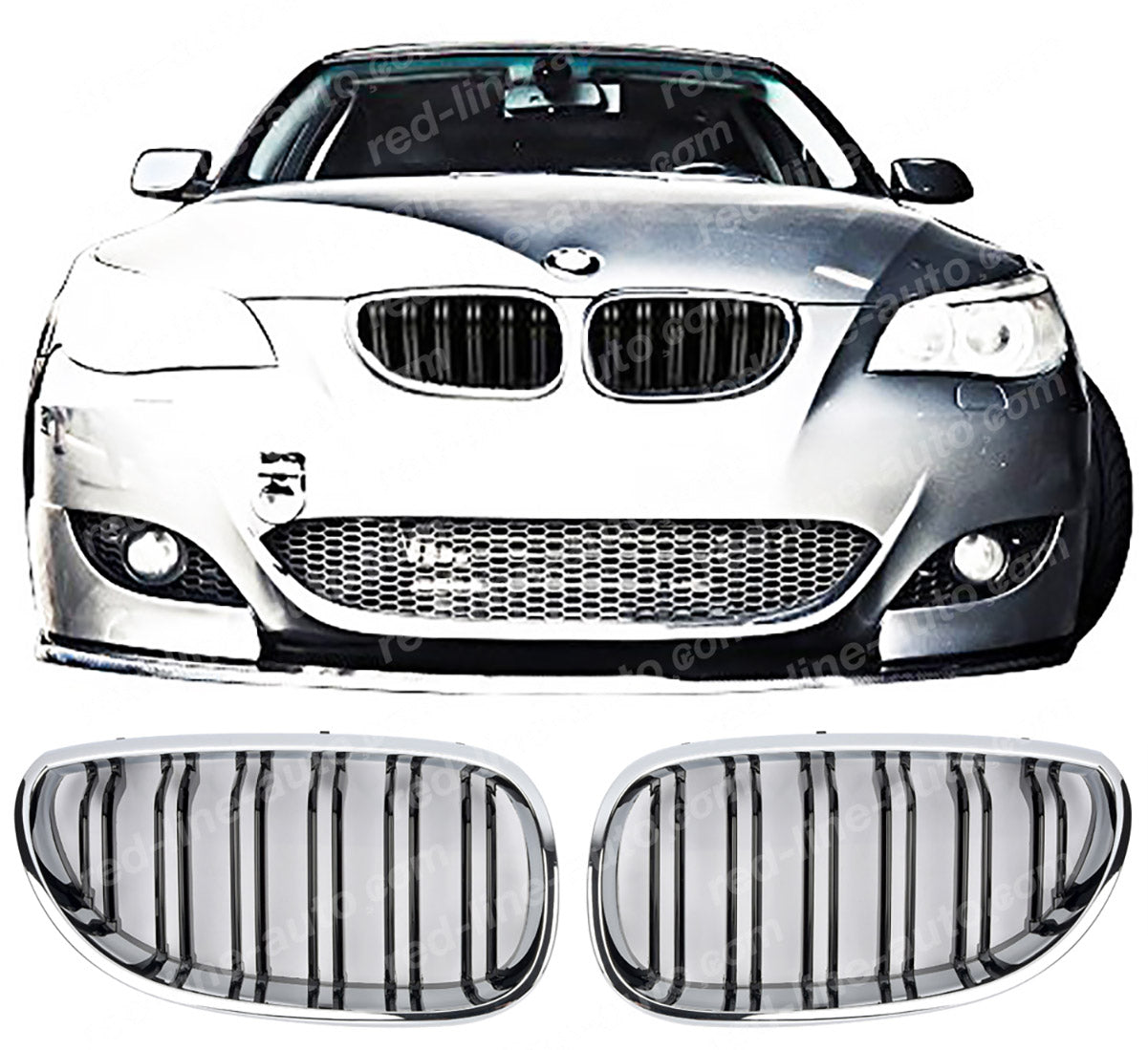 BMW 5 Series E60 Saloon E61 Estate M-Power Grille, Black Twin-Bar with Chrome Rim