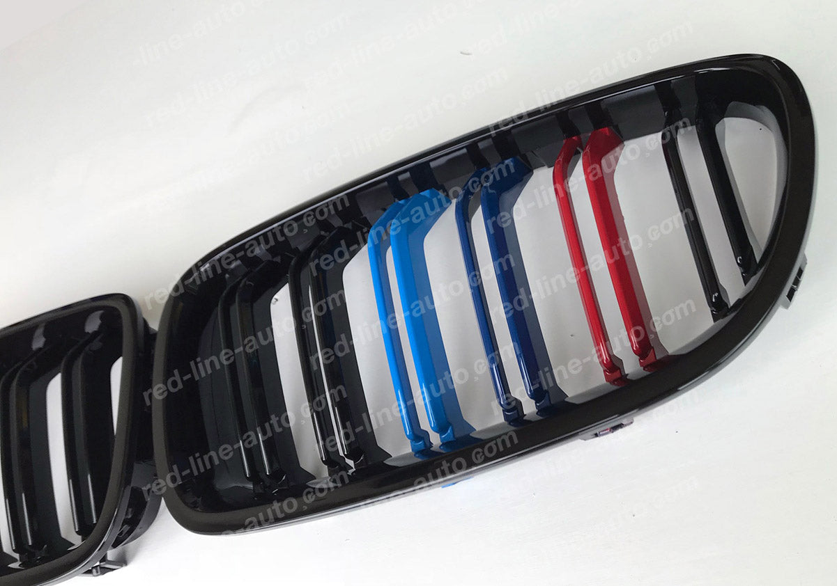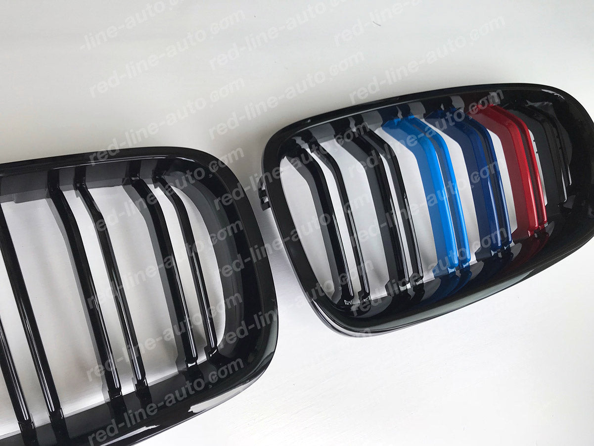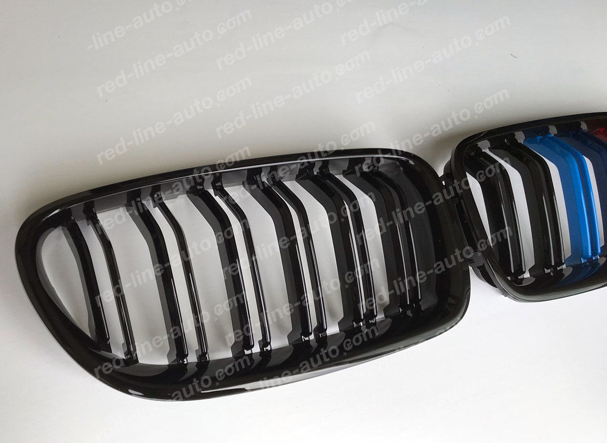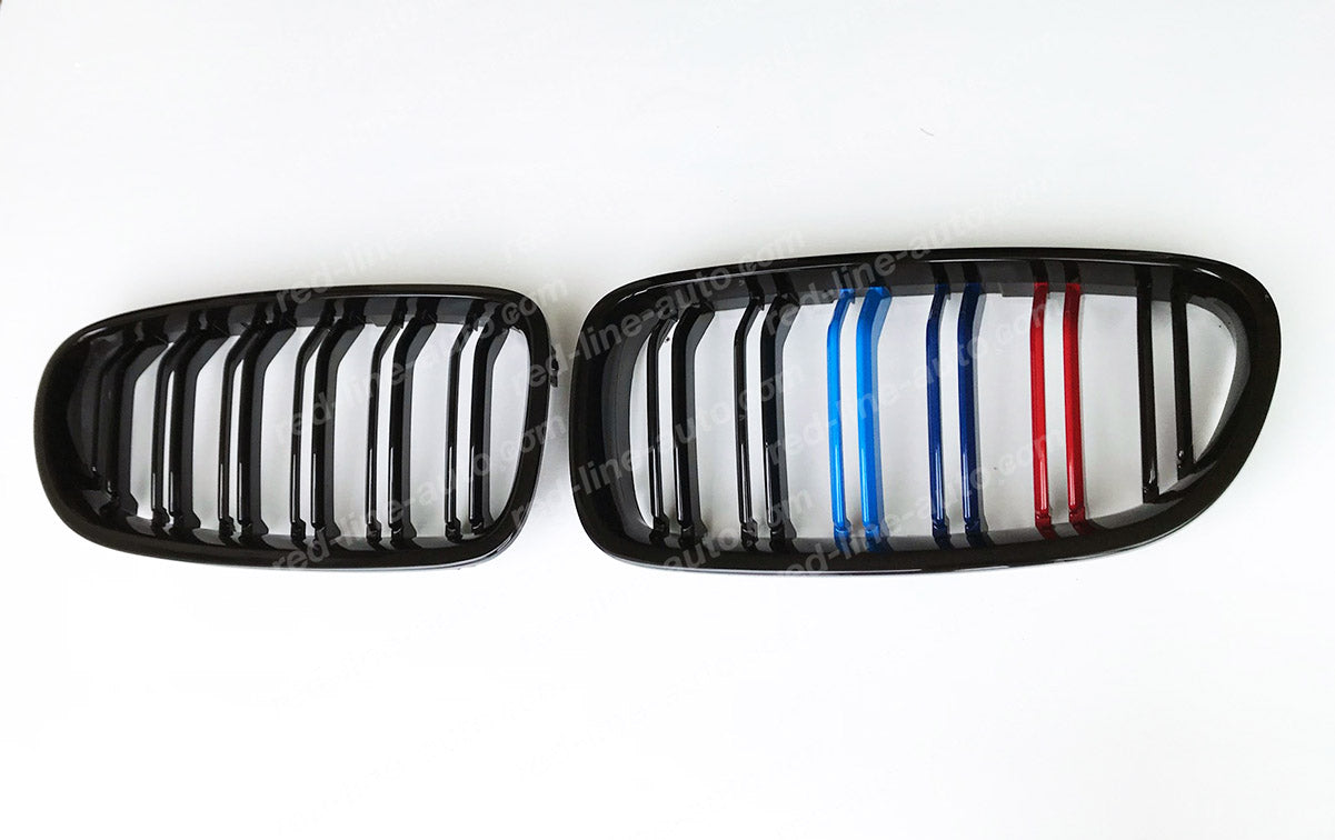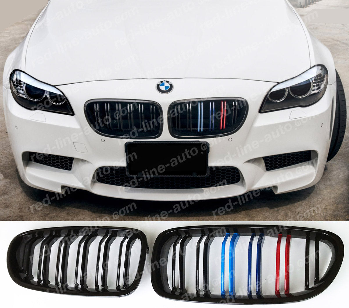 BMW 5 Series F10 Saloon F11 Estate Double-bar Grille, Black with M-Power Tri-Colours