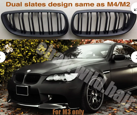 BMW E90 3 Series M3 Saloon E92 Coupe E93 Convertible Front Grille, Full Matte Black Twin-slat