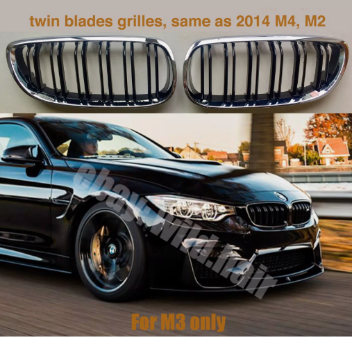 BMW E90 M3 Saloon E92 Coupe E93 Convertible Black Grille, Double-slat Chrome Surround