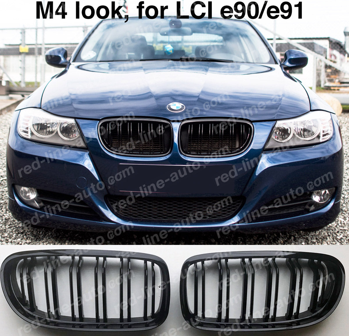 Facelift BMW 3 Series E90 Saloon E91 Estate Twin-Slat M-Performance Grille, Full Gloss Black