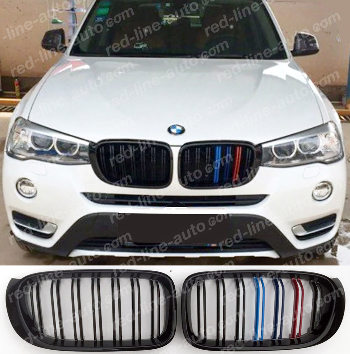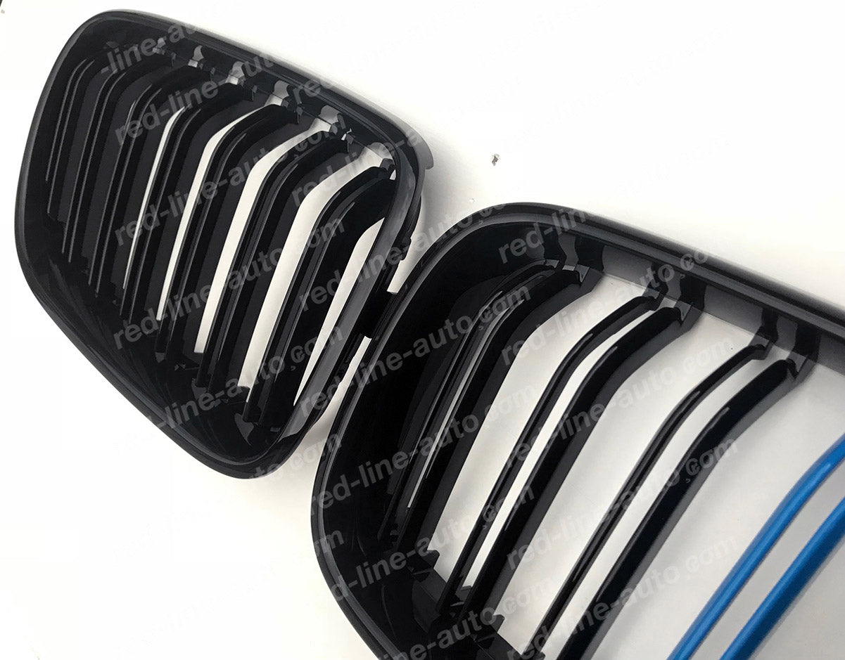 Facelift BMW F25 X3 SUV X4 Coupe Twin-bar Front Grille, Black with M-Power Tri-Colours