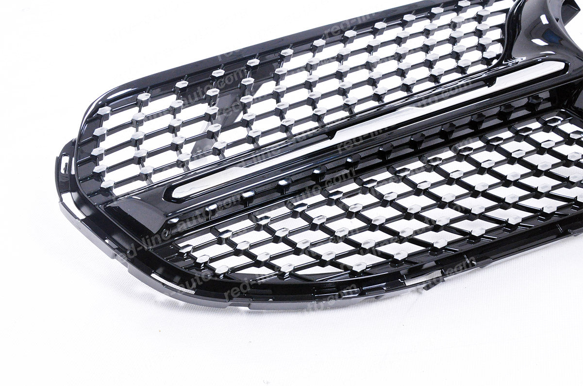 Aftermarket grilles manufactured at OEM standard, with top quality materials, precise design and light weight. A very cost-effective way to give your car a fresh lift to stand out on the road. This grille update is in line with AMG's newest design language: single horizontal fin with diamonds in chrome, it will subtle transform your car to provide a unique look without being crude.
