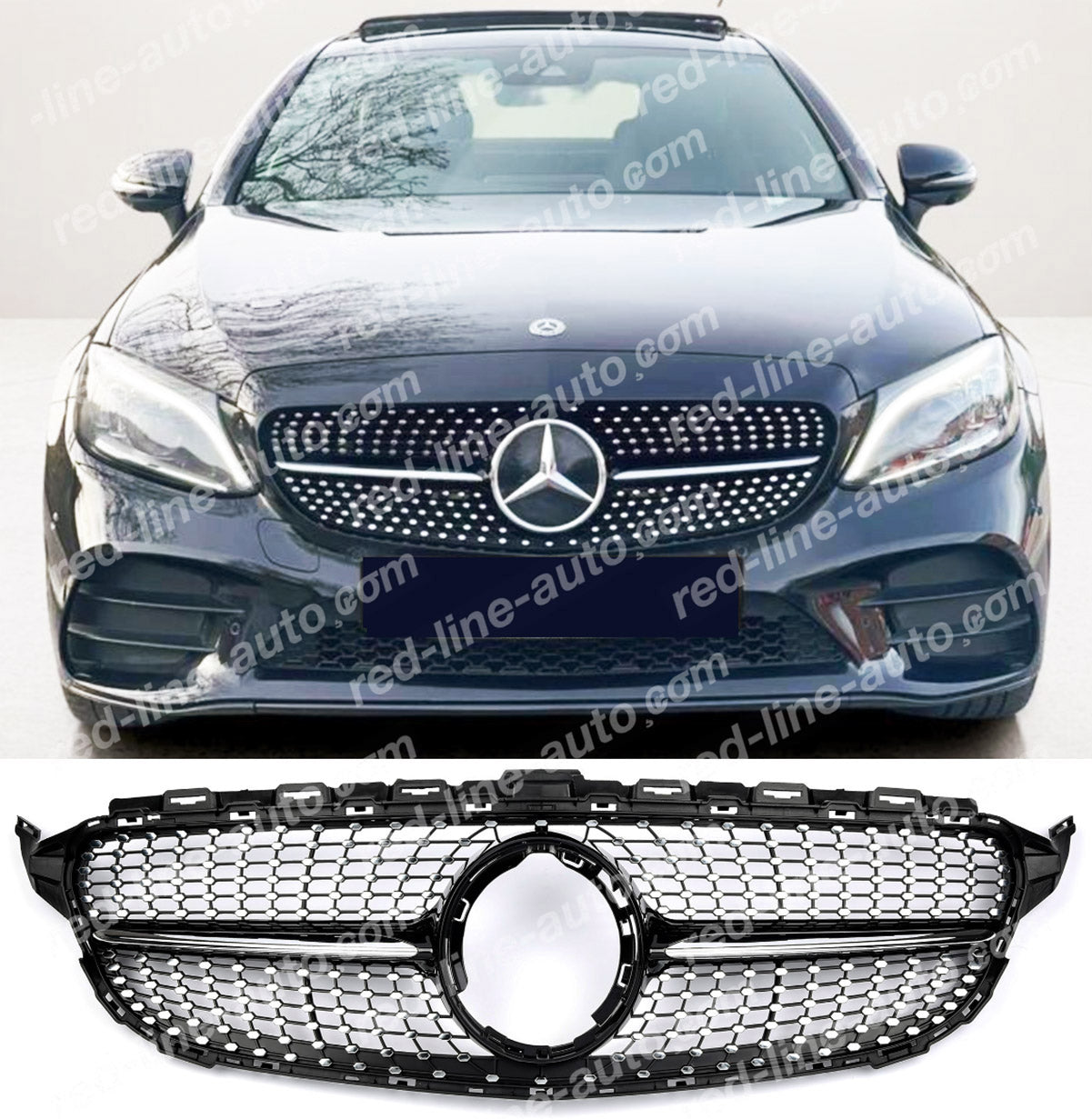 Facelift Mercedes W205 C-Class S205 C205 A205 Black AMG Grille, Chrome Diamond No-Camera